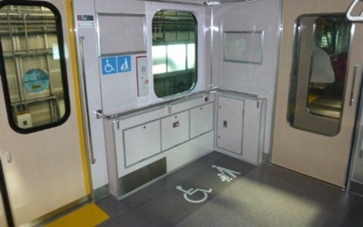 6両2編成をリニューアルし、全車両に車いすやベビーカーをご利用のお客さまのスペースを設け、どなたにもご利用しやすい車両に改修します。また、搭載する防犯カメラは、映像を運輸司令所など離れた場所からリアルタイムに確認できる機能を有しており、緊急時における迅速な対応や正確な状況把握を可能にします。