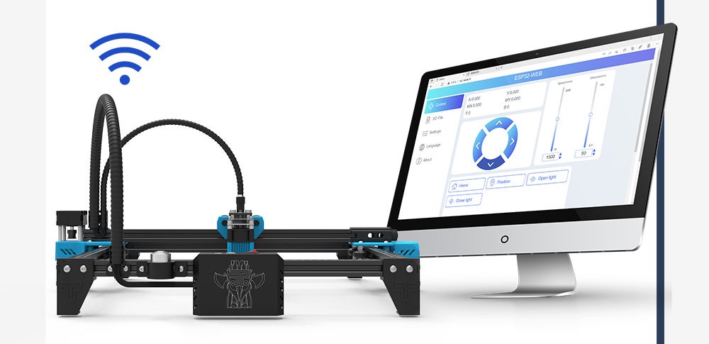 Wi-Fi接続でパソコンからレーザー加工の内容をケーブル不要で操作ができます。