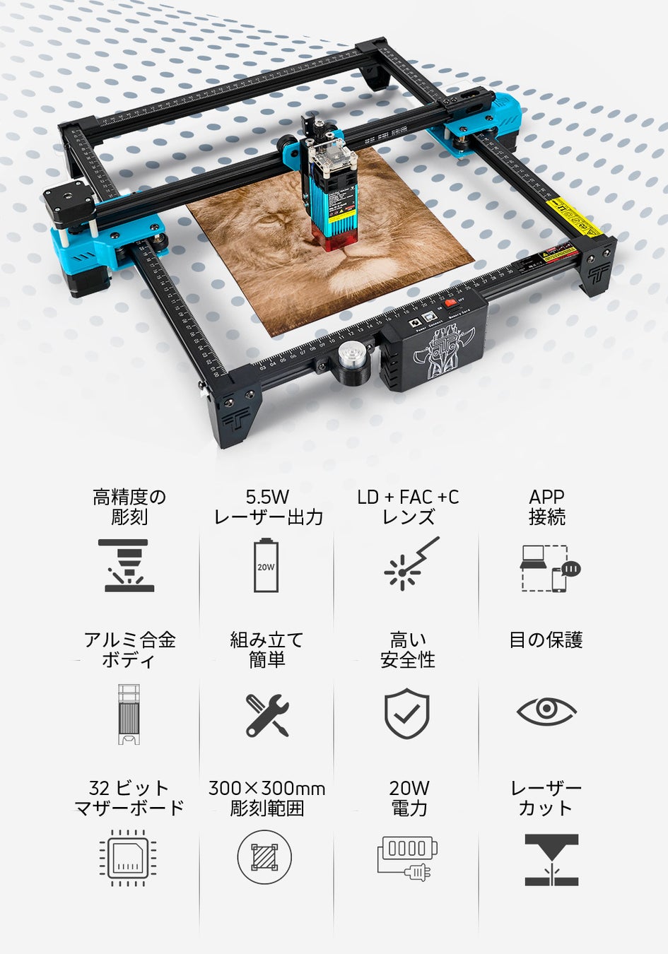 【スポット0.08mmの高解像加工/CNC/Windows・Mac・iOS・Android対応】 レーザーカッター&レーザー彫刻機です。