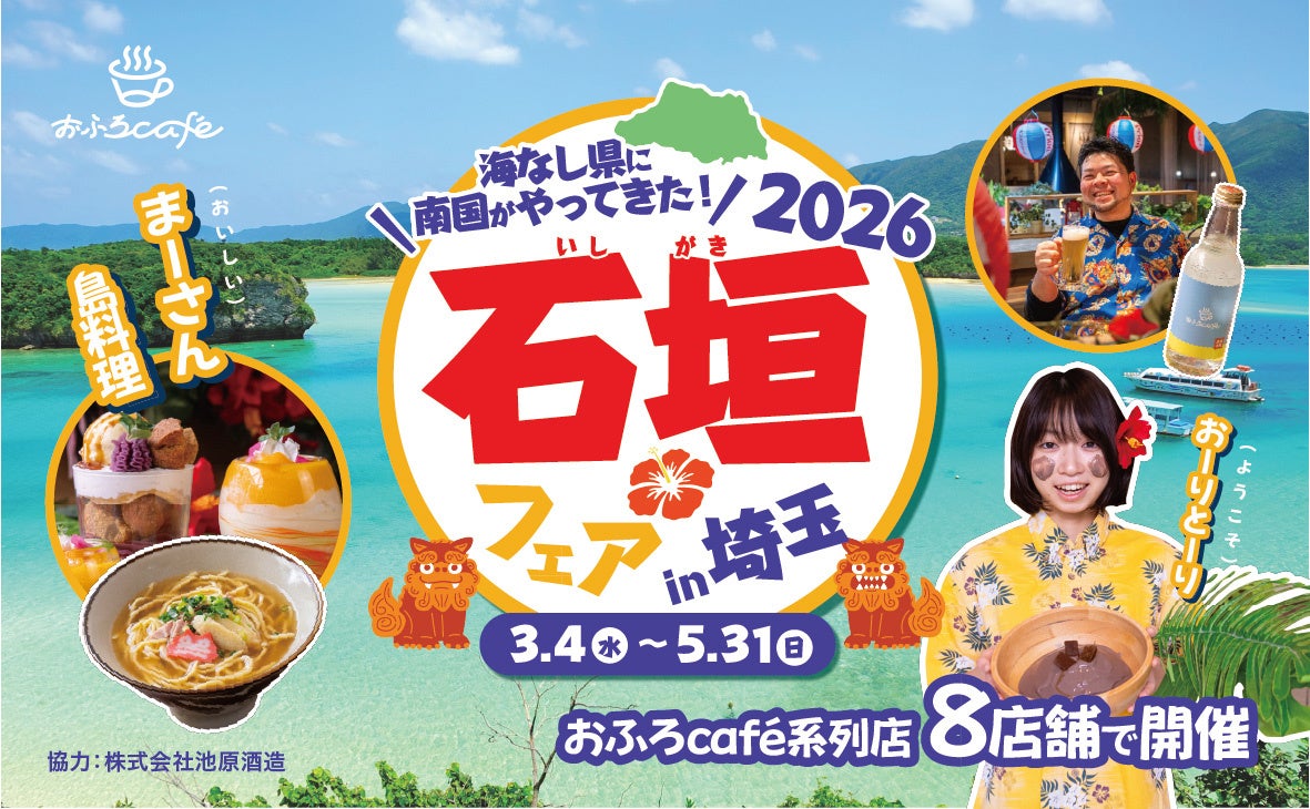 株式会社温泉道場(埼玉県比企郡ときがわ町、代表取締役 山崎寿樹)と株式会社Kii company(三重県四日市市、代表取締役 宮本昌樹)が運営する埼玉県内の下記温浴施設にて、2026年3月4日(水)〜5月31日(日)の期間中、石垣島の食や文化が体験できる「石垣フェア 2026」を開催中です。