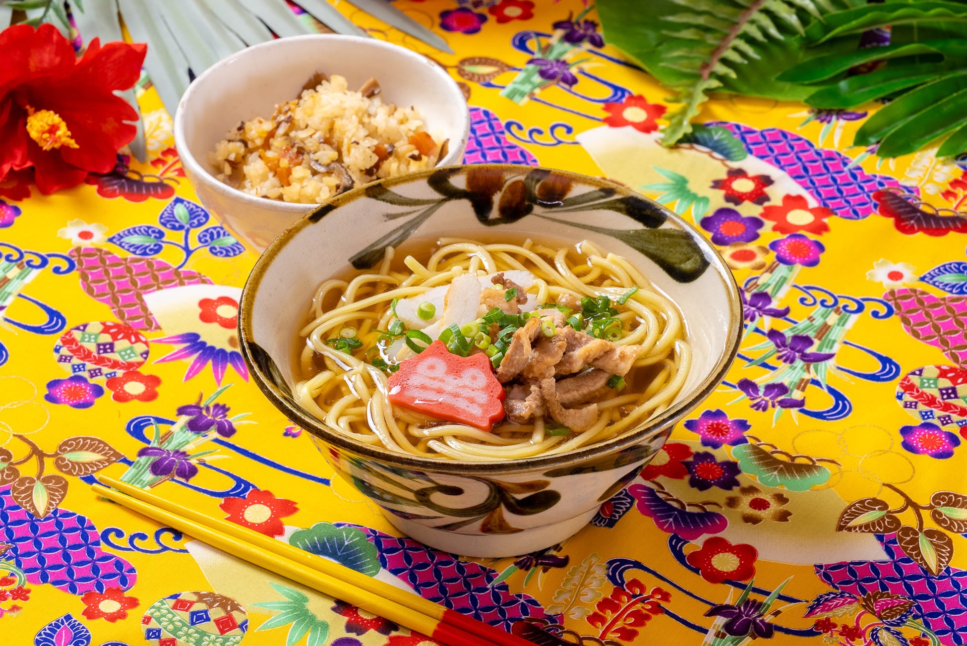 八重山そばとは出汁の利いたしょうゆベースのスープに細めのストレート麺、具材は細切りにした豚肉とかまぼこをのせたあっさりとした八重山地方のソウルフードです。石垣島の金城製麺の丸麺とかまぼこは、かみやーき小(ぐわー)のかまぼこを使用し、本場八重山の味をお楽しみください。