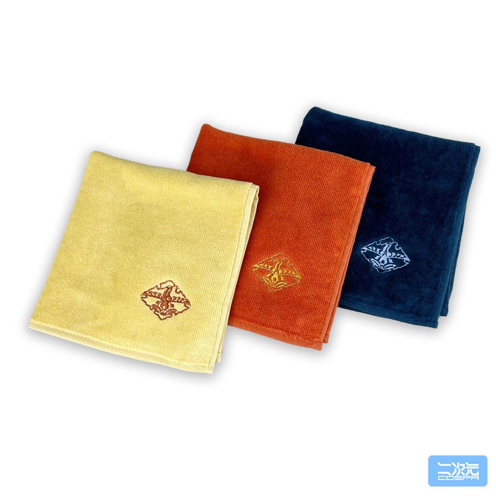 こちらはTシャツ、カラビナに加え、ぼんぼり祭りからワンシーンを切り取ったような美しいアクリルアートと緒花・民子・菜子の3人をイメージした喜翆荘の刺繍ハンドタオルが3色で展開いたします。