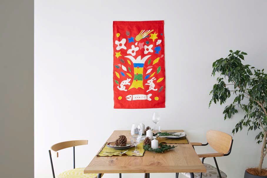 100 歳を迎える柚木さんのアニバーサリーイヤーに、柚木さんとイデーによる「FESTIVITY!」なクリスマスを提案します。クリスマスのしつらえとして制作した「生命の樹」と名付けられた型染めタペストリーやオーナメント、お部屋を楽しく演出してくれる家具や照明、テキスタイルアイテム、お薦めのギフトアイテムを取り揃えます。