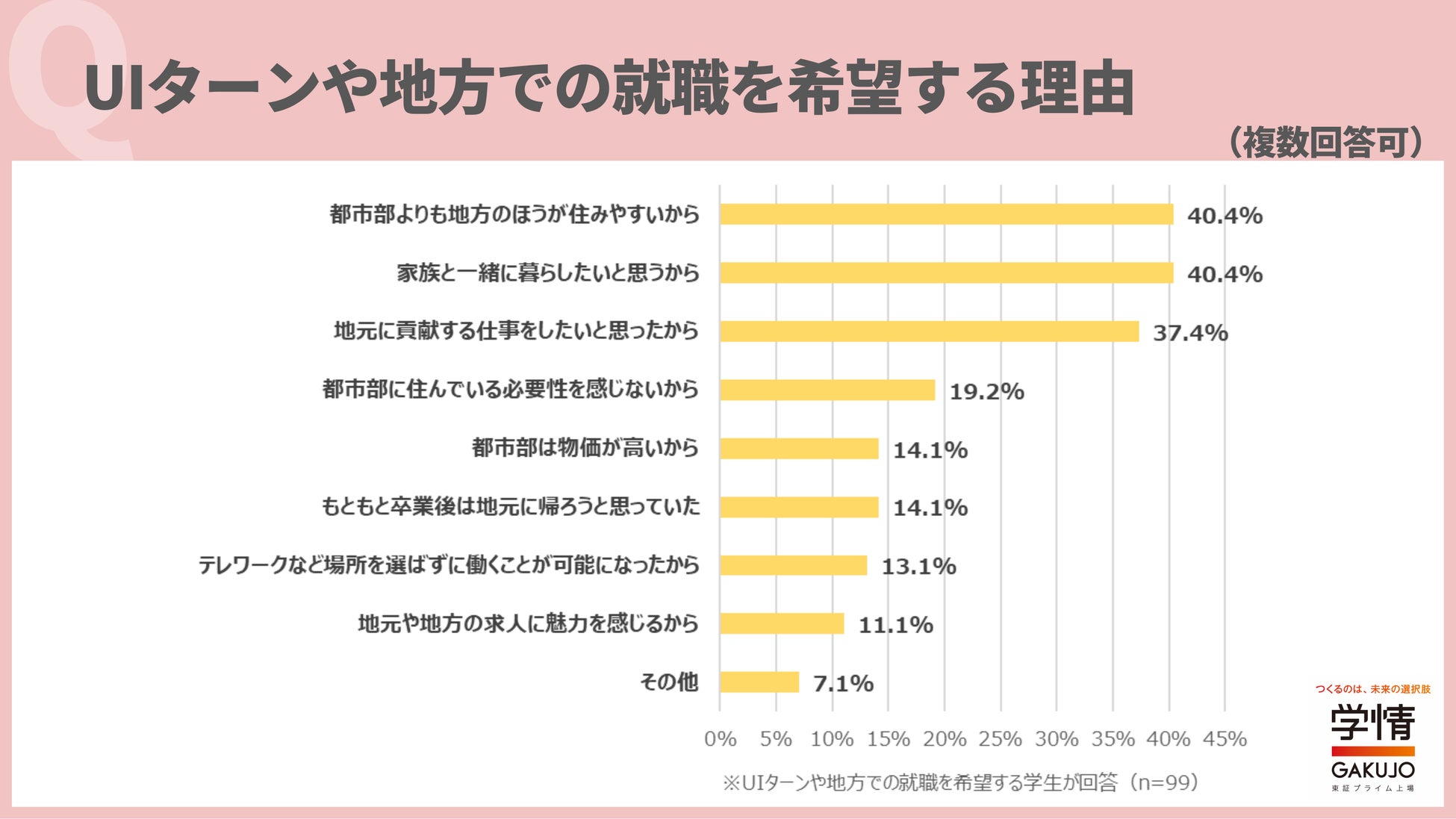 UIターンや地方での就職を希望する学生が約4割。「実家の近くに住みたい」「地方は都市部よりも物価が安く、生活しやすいと思う」の声