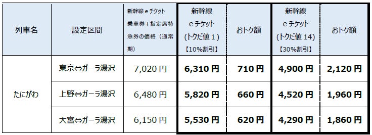 上越新幹線の「新幹線eチケット(トクだ値)」にガーラ湯沢駅発着を設定します。