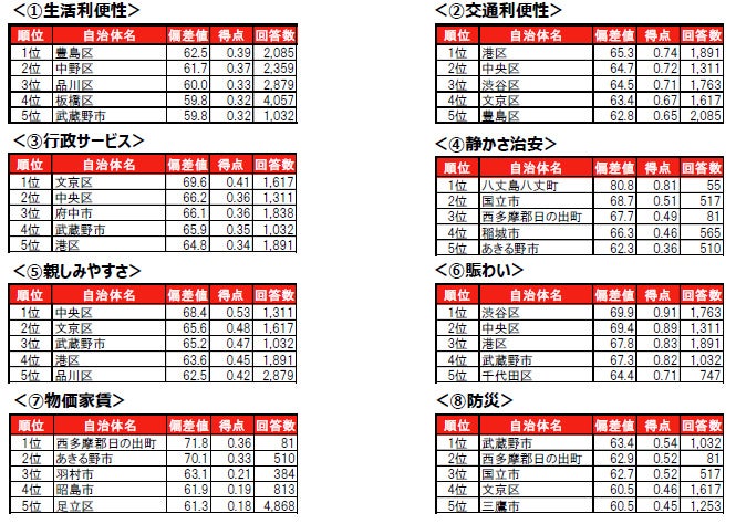 街の住みここち(自治体)ランキング2025<東京都版>自治体TOP20・因子別TOP5
