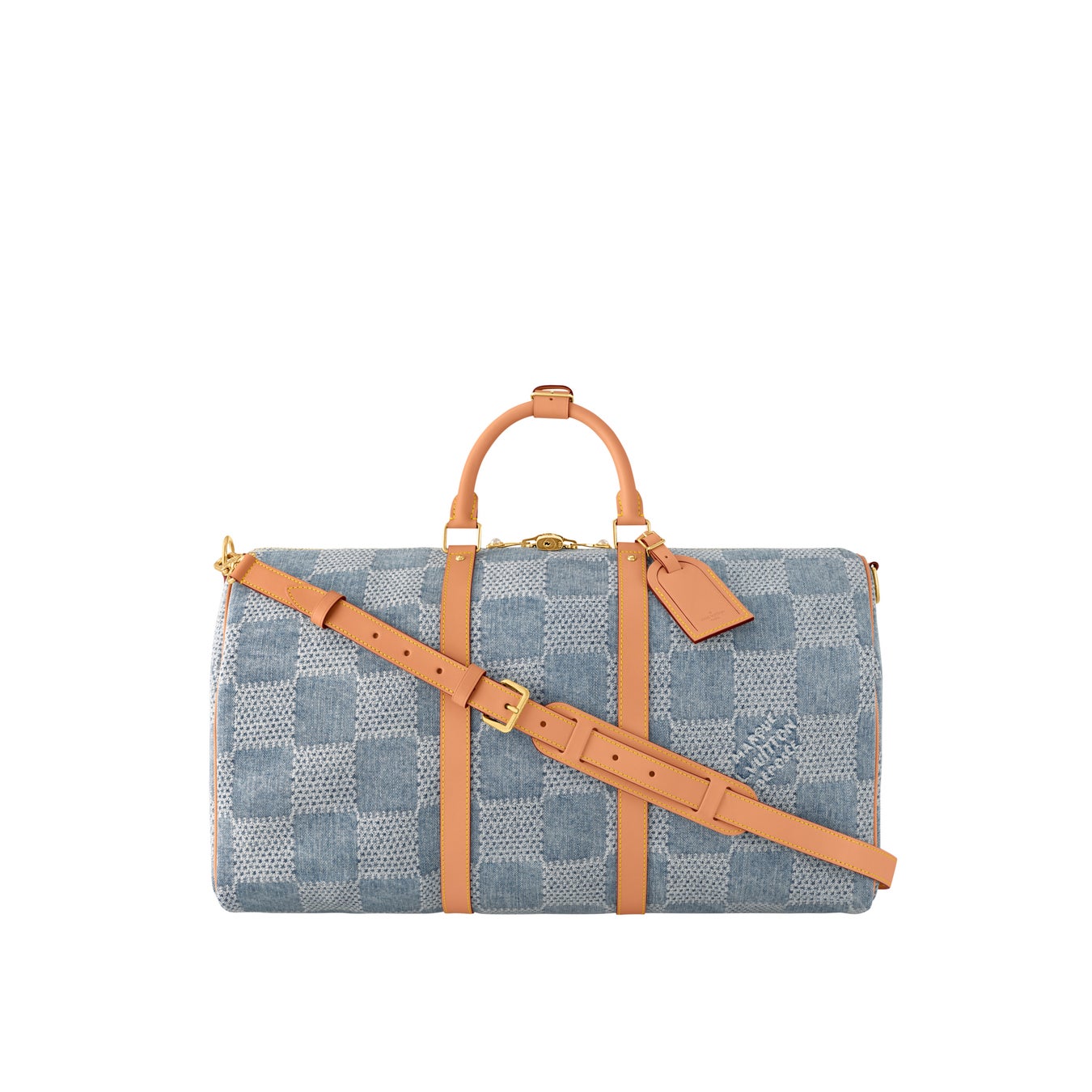 ダミエ·パターンに夏らしいアレンジを加えたダミエ·デニム 3D コットンキャンバスの「キーポル·バンドリエール 50」。このキャンバス地は、オーガニックコットンのベースにカットやブリーチ加工、染色を施すことで洗いざらしたような風合いに仕上げたもの。さらに洗いをかけて少し収縮させた素材が、立体的な質感を実現します。バッグの2つのファスナー引き手にはパール調の装飾を散りばめました。