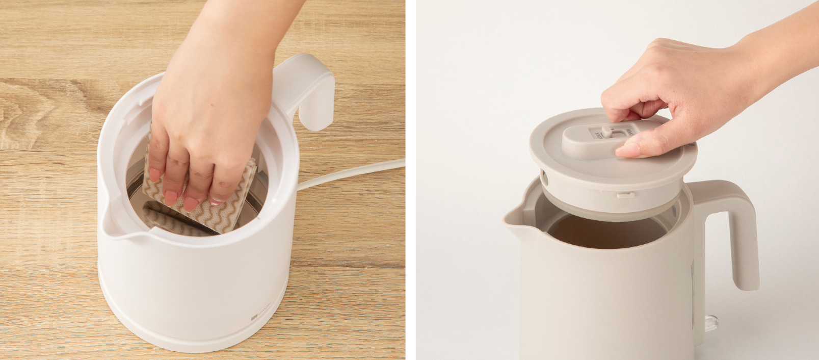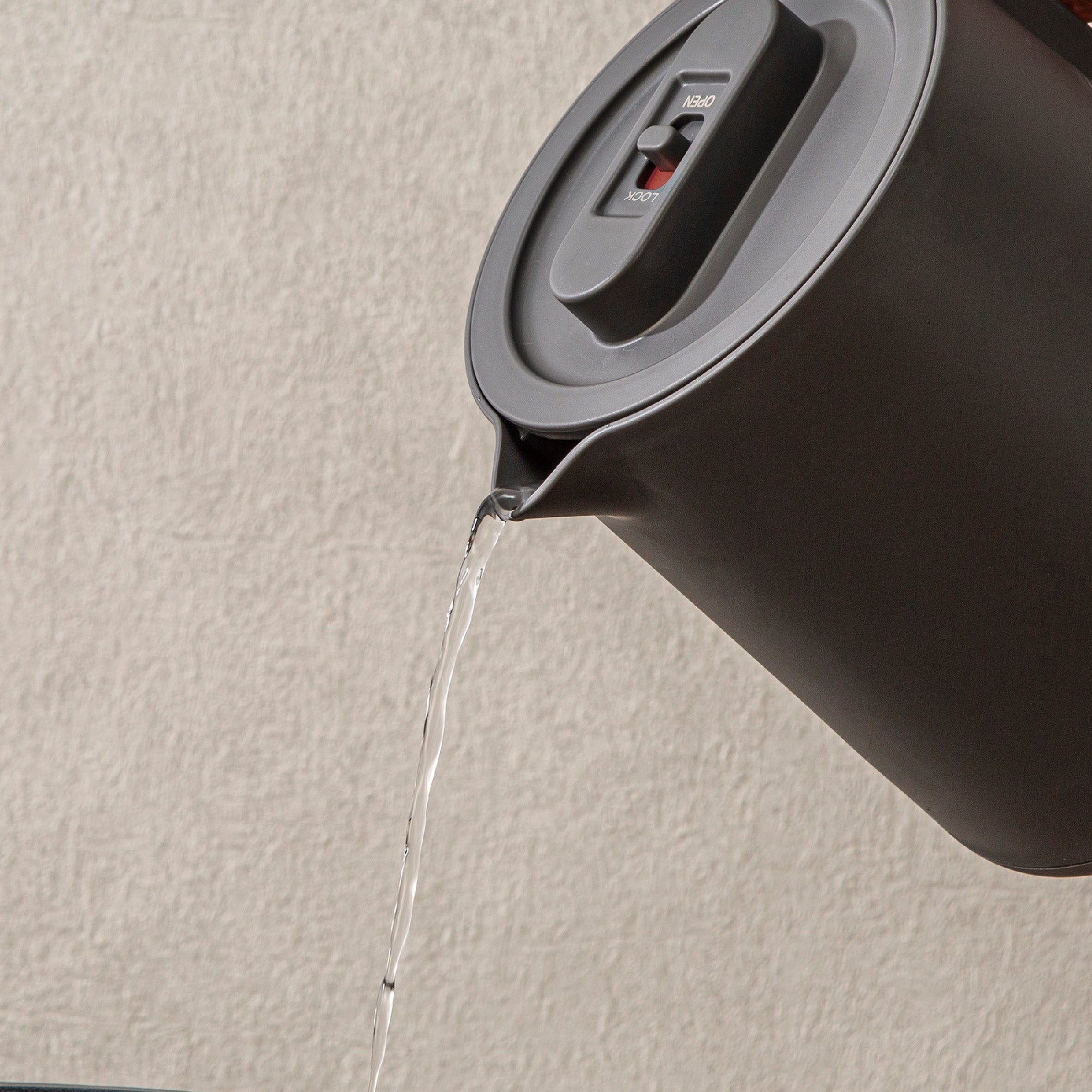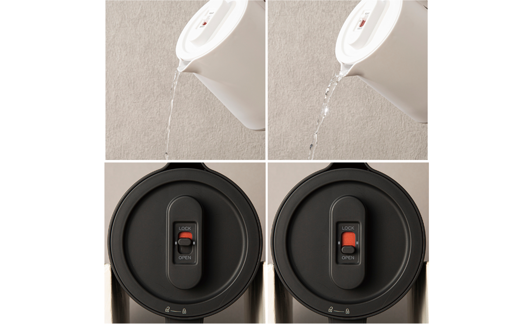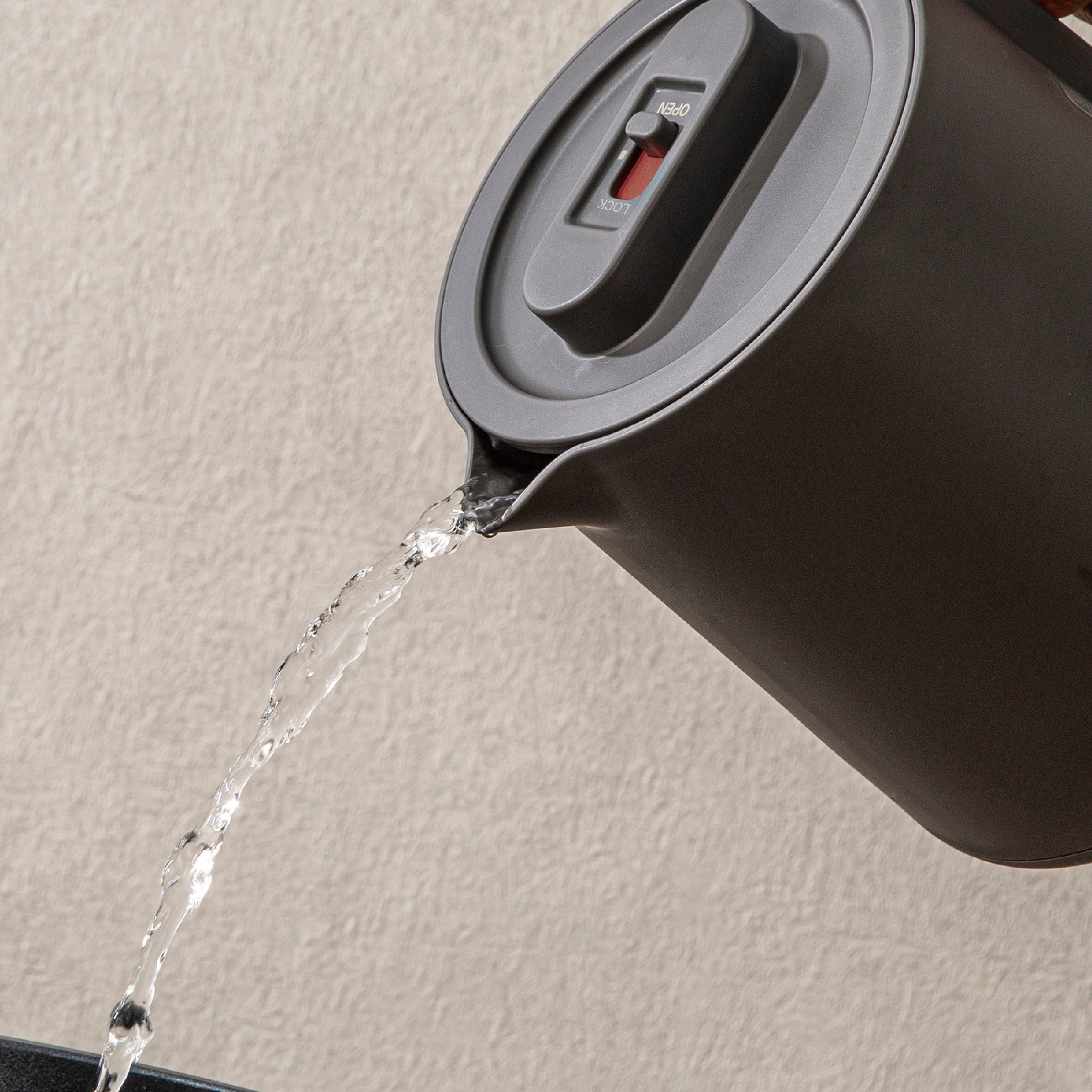 そしてこの度、レバーを操作するだけで簡単に2段階の湯量調節ができる嬉しい機能が備わった「湯量が調節できる電気ケトル0.8L」を発売しました。