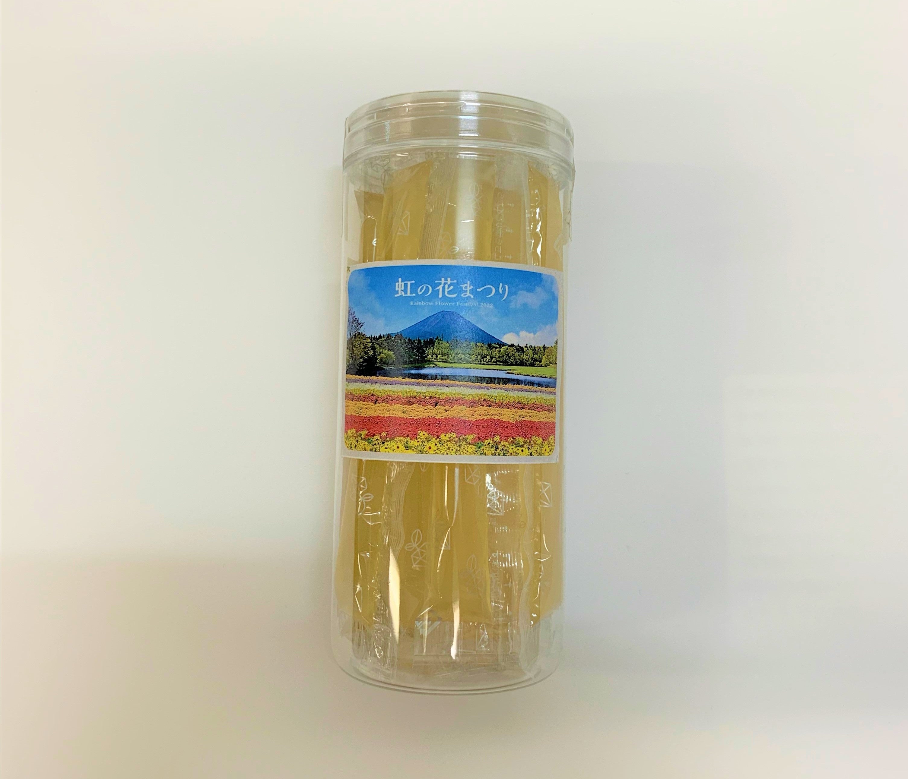 会場内のショップでは、白桃、レモン柚子、ローズなど5種類の国産フルーツピューレを使用した限定の「スティックゼリー」が新登場。四季の富士山を感じられる、河口湖の和菓子屋「金多留満」の「富士山羊羹」と桃や金木犀の花びらを使用しており、そのままお召し上がりいただくのはもちろん、凍らせてシャーベット状にしてお召し上がりいただくのもおすすめです。