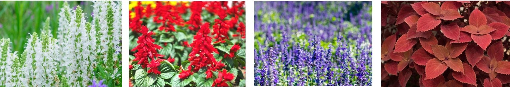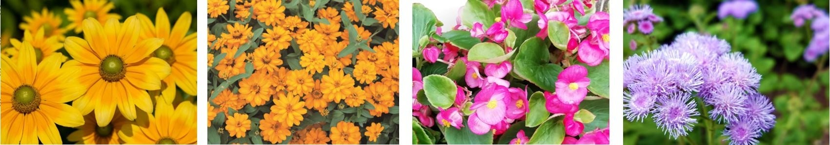 (左から)ルドベキア、ジニア、ベゴニア、アゲラタム
