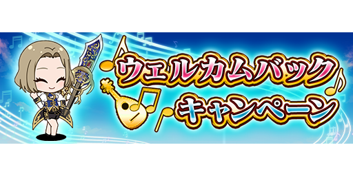 2021/11/30(火)23:59よりゲームにログインしていないユーザーが期間中にログインすると、「Sキャラ確定ガチャチケット」、毎日のログインボーナスとして「メロディガチャチケット」30枚と「経験値剤大」をプレゼント!