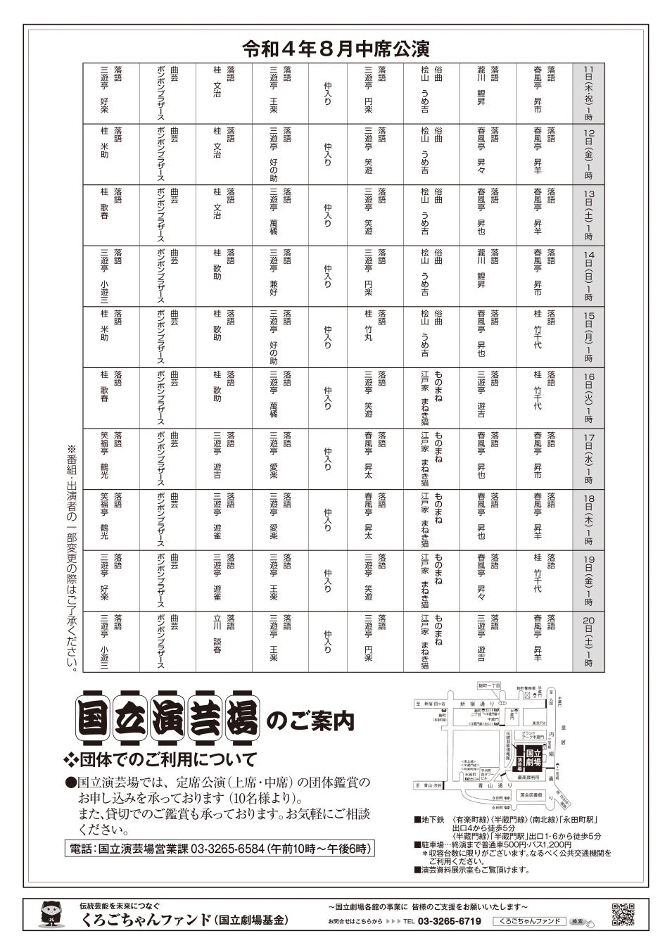 豪華出演者が日替わりで登場 『国立演芸場 令和4年8月中席公演』出演者決定 カンフェティでチケット発売