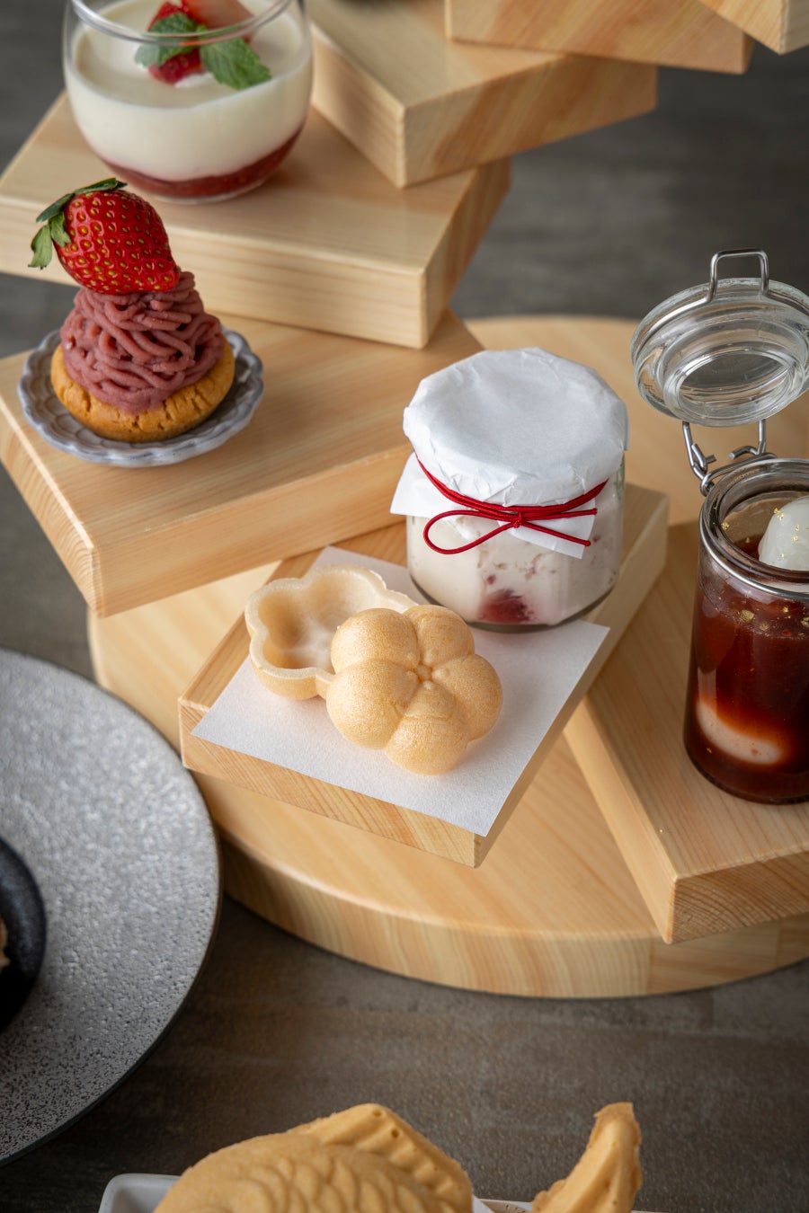 お抹茶を含む日本茶5種と、カフェインレスティー13種と共にしっとりと落ち着いた、和のアフタヌーンティーをお楽しみください。