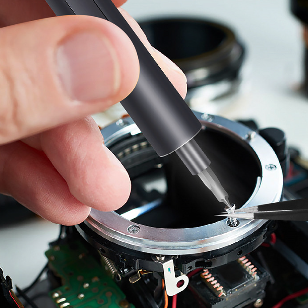 - スイッチを押すだけでネジ締めできるペン型電動ドライバー