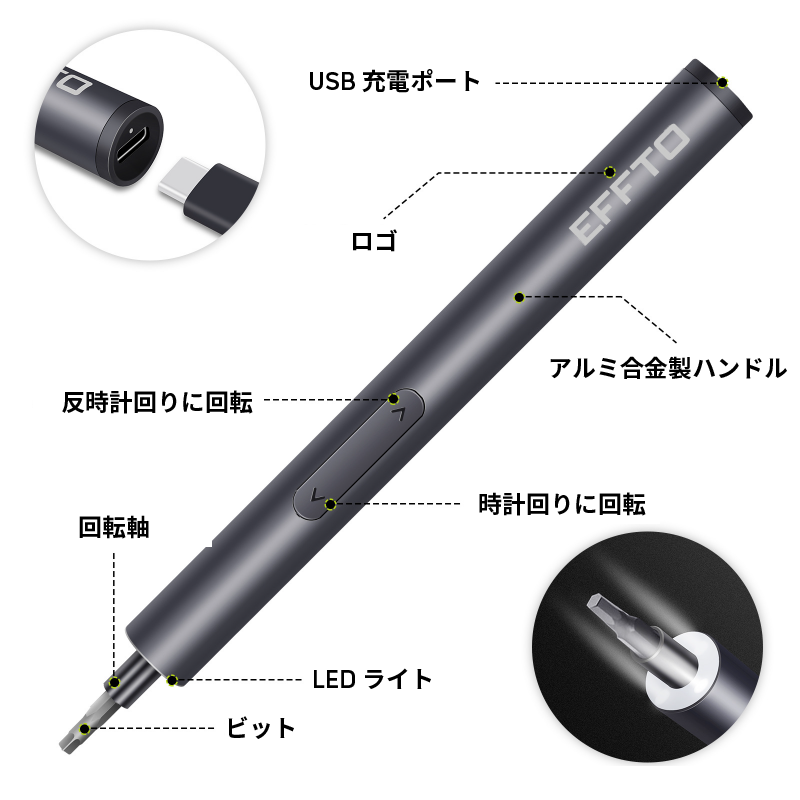 - 60種類のビットが付属した60in1ドライバー
