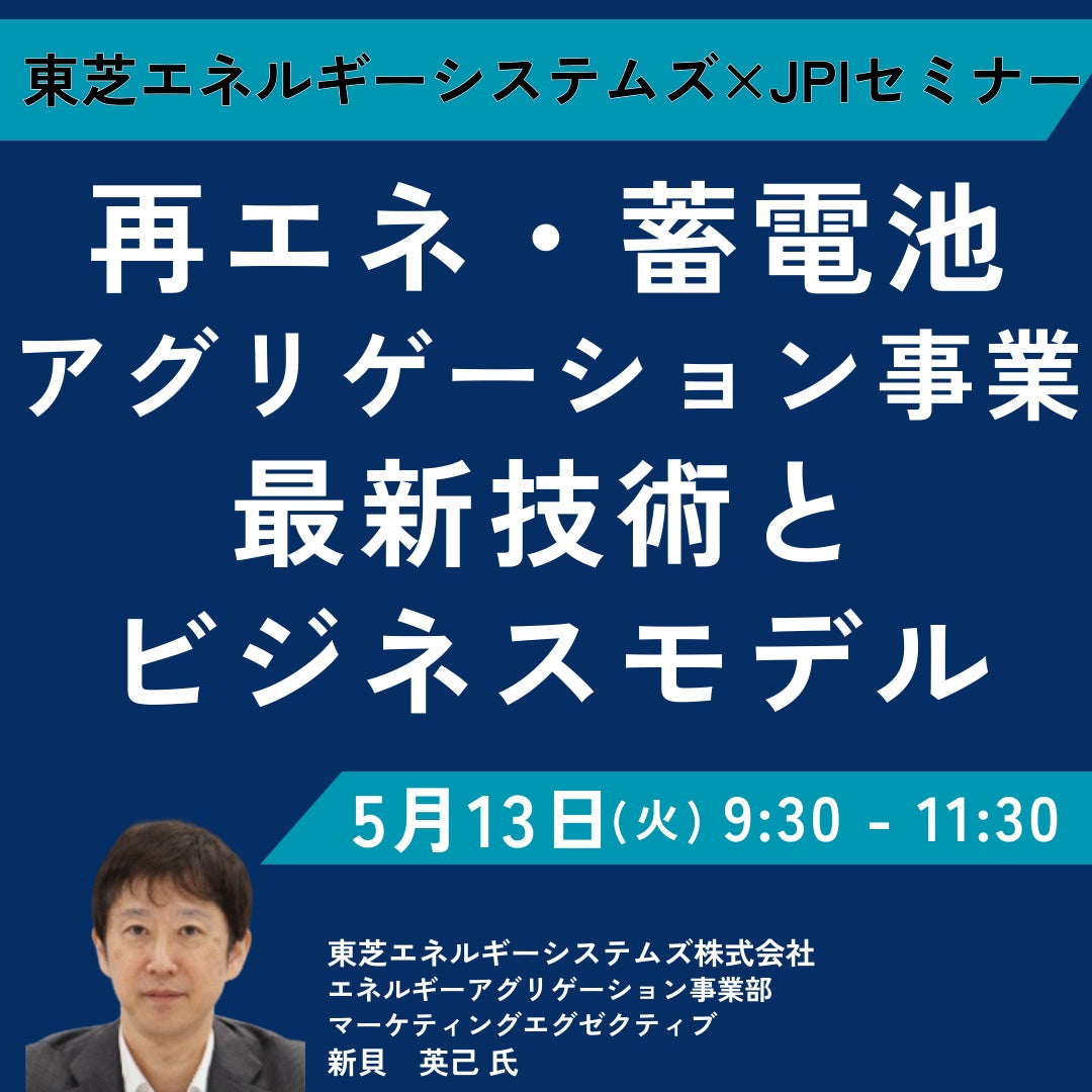 【JPIセミナー】東芝エネルギーシステムズ(株)「再エネ・蓄電池アグリゲーション事業 その最新技術とビジネスモデル」5月13日(火)開催