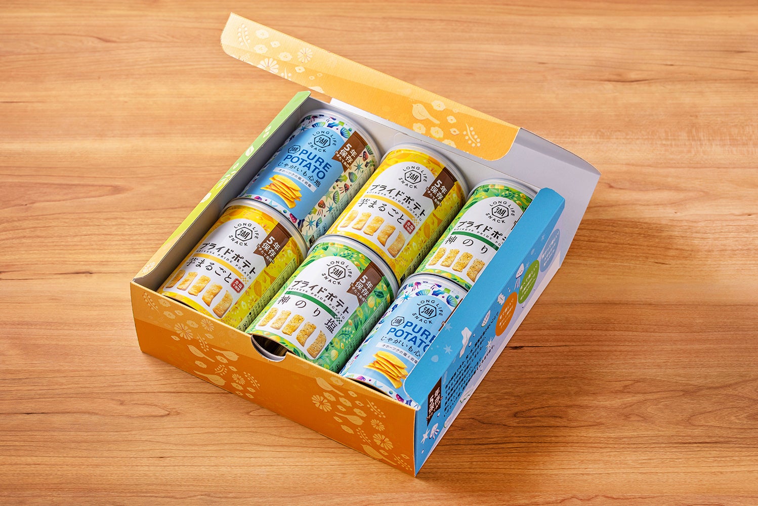 湖池屋オンラインショップ限定の6缶セットでは、上記3品各2缶を特製のギフトボックスに入れてお届けします。ご自身の普段使いやいざという時の備えとしても、大切な方への“備える安心感”の贈りものとしてもぴったりです。