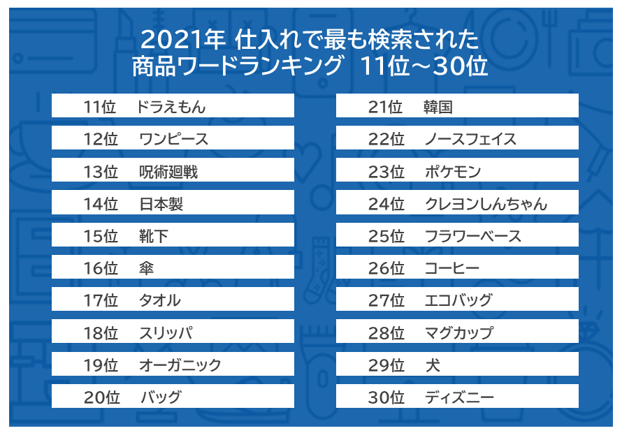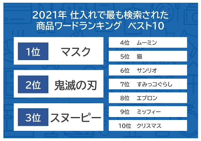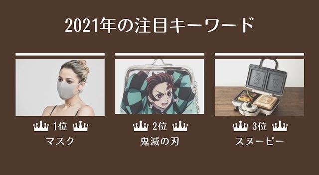 2021年仕入れで最も検索された商品キーワードランキング発表!1位「マスク」 2位「鬼滅の刃」 3位「スヌーピー」