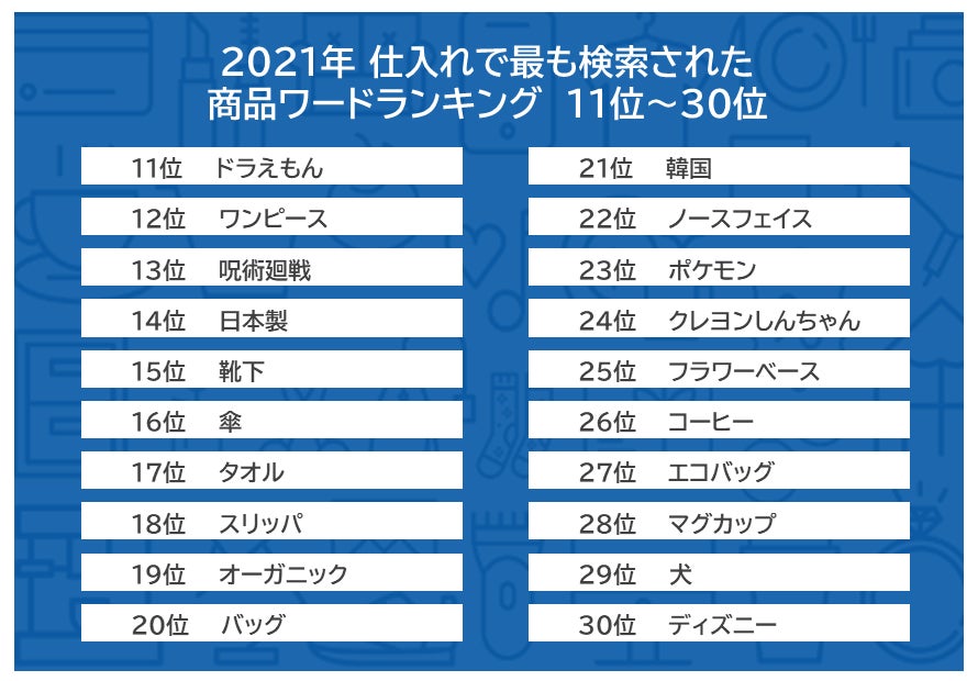 このたび、2021年1月1日から12月9日までの期間で、仕入れ会員である小売店や飲食店、サービス業などの事業者から検索されたキーワードをランキング形式でまとめました。
