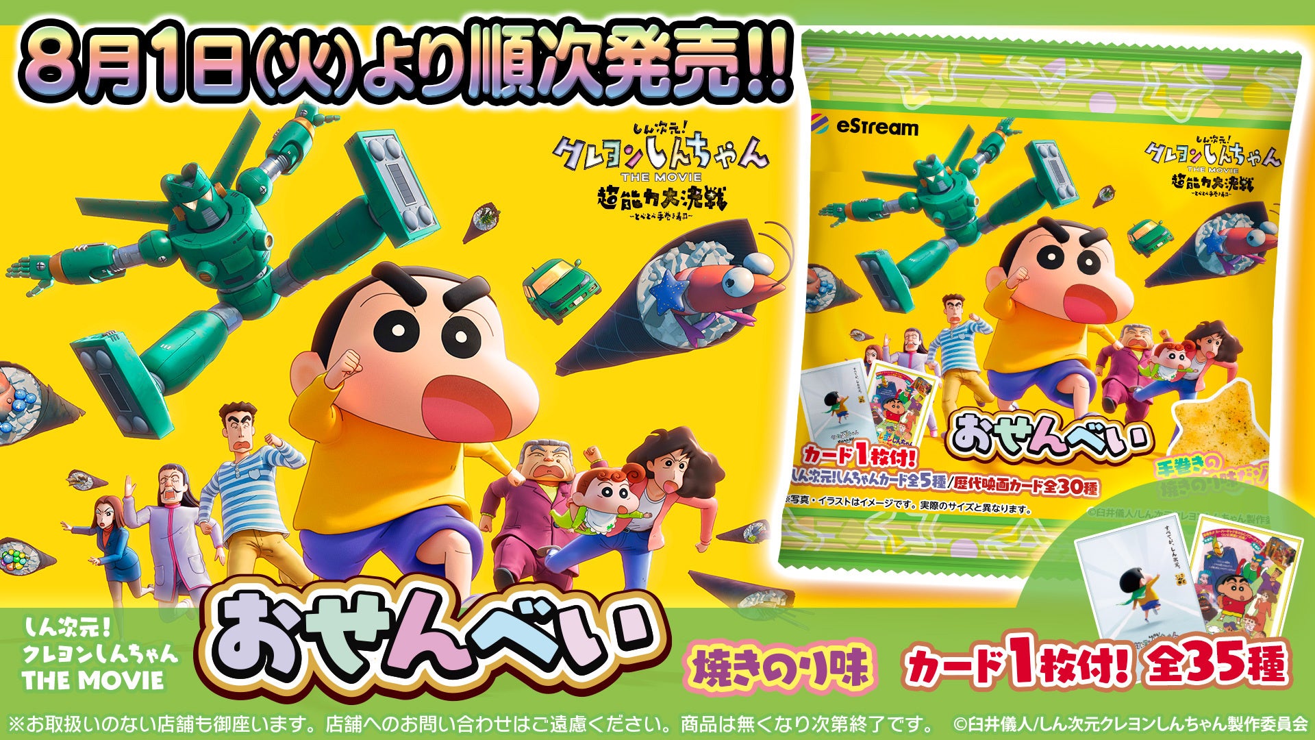 eStream、「クレヨンしんちゃん」シリーズ最新作の映画公開を記念して、『しん次元!クレヨンしんちゃんTHE MOVIE カード付きおせんべい 焼きのり味』の発売を決定!