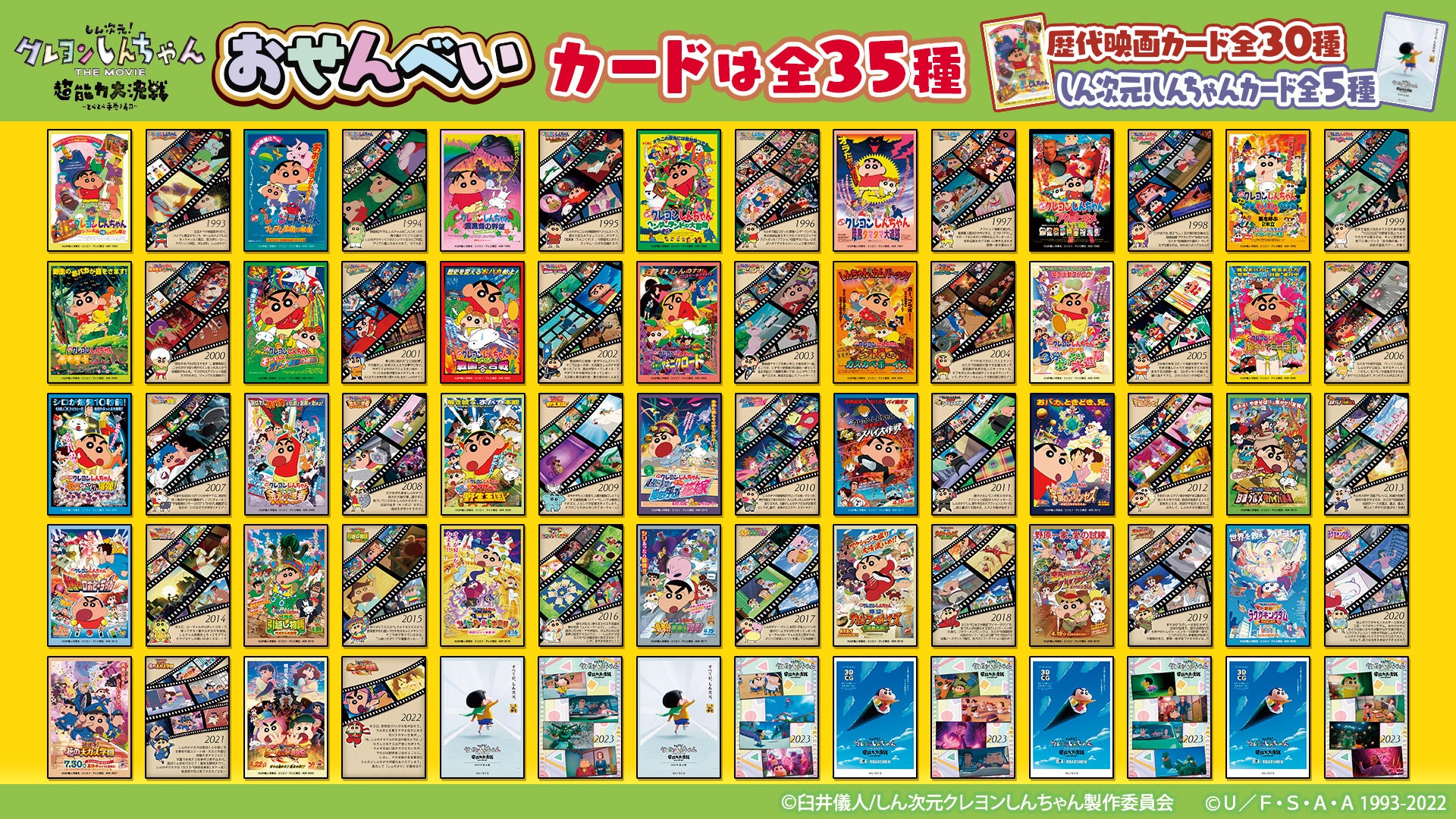 本商品は、しん次元!しんちゃんカード5種、歴代映画カード30種の全35種の中から、ランダムでカードが1枚ついてきます。なくなり次第終了となりますのでお早めにお買い求めください。