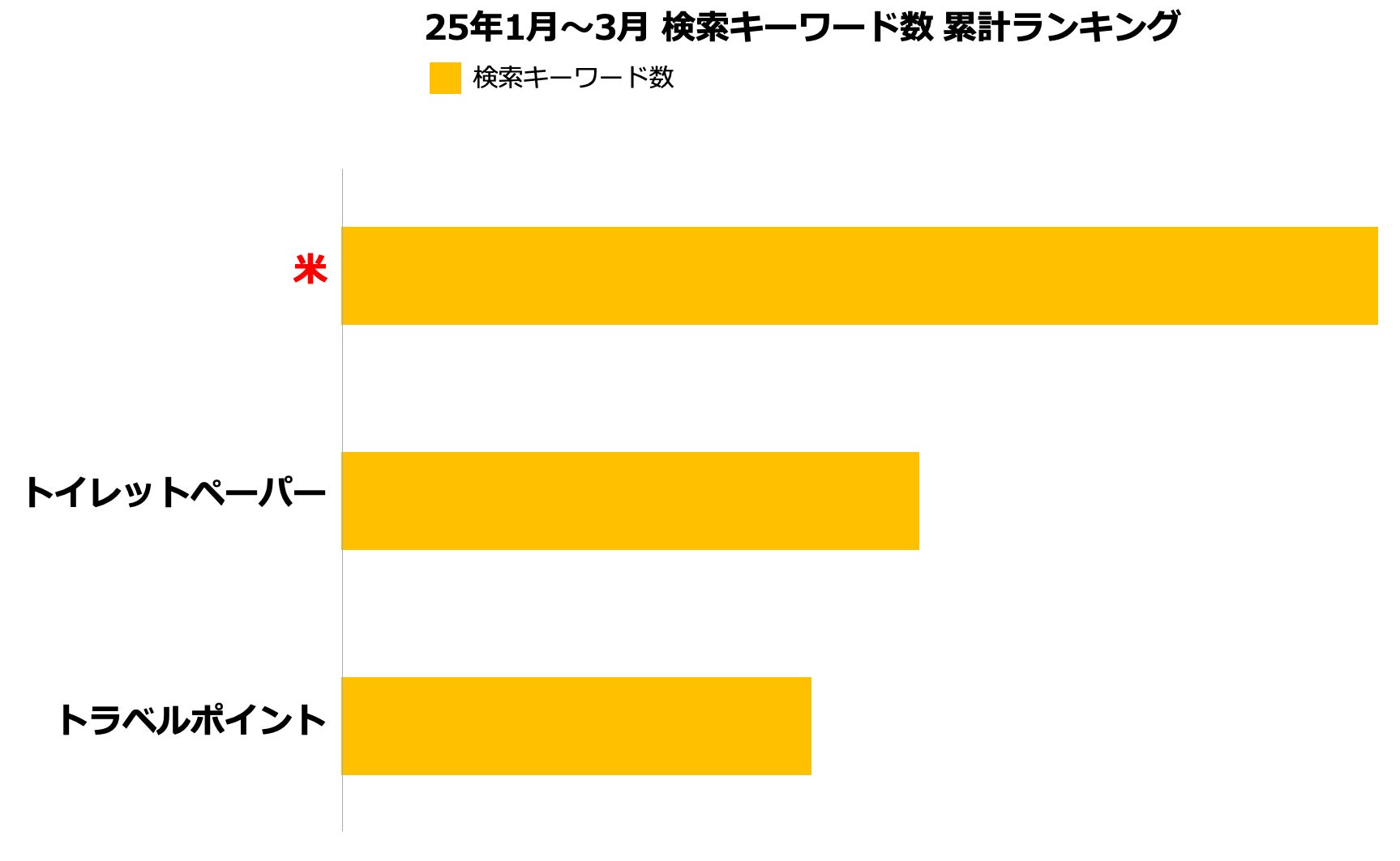さらに、2025年1月~3月の検索キーワード累計ランキングでは「米」が1位に。