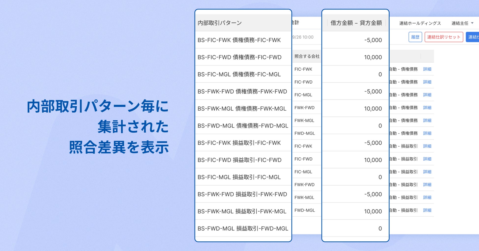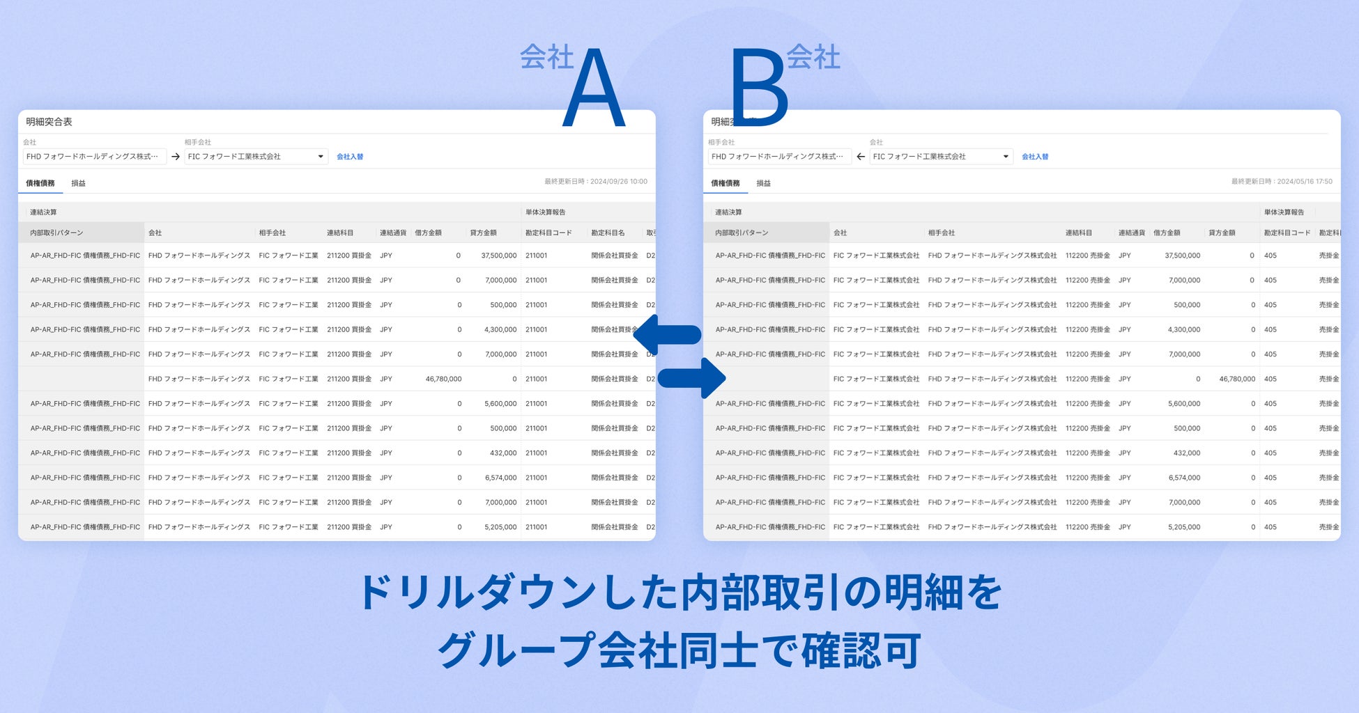 ・明細突合表 - 照合表からドリルダウンした内部取引の明細をグループ会社間で確認可能