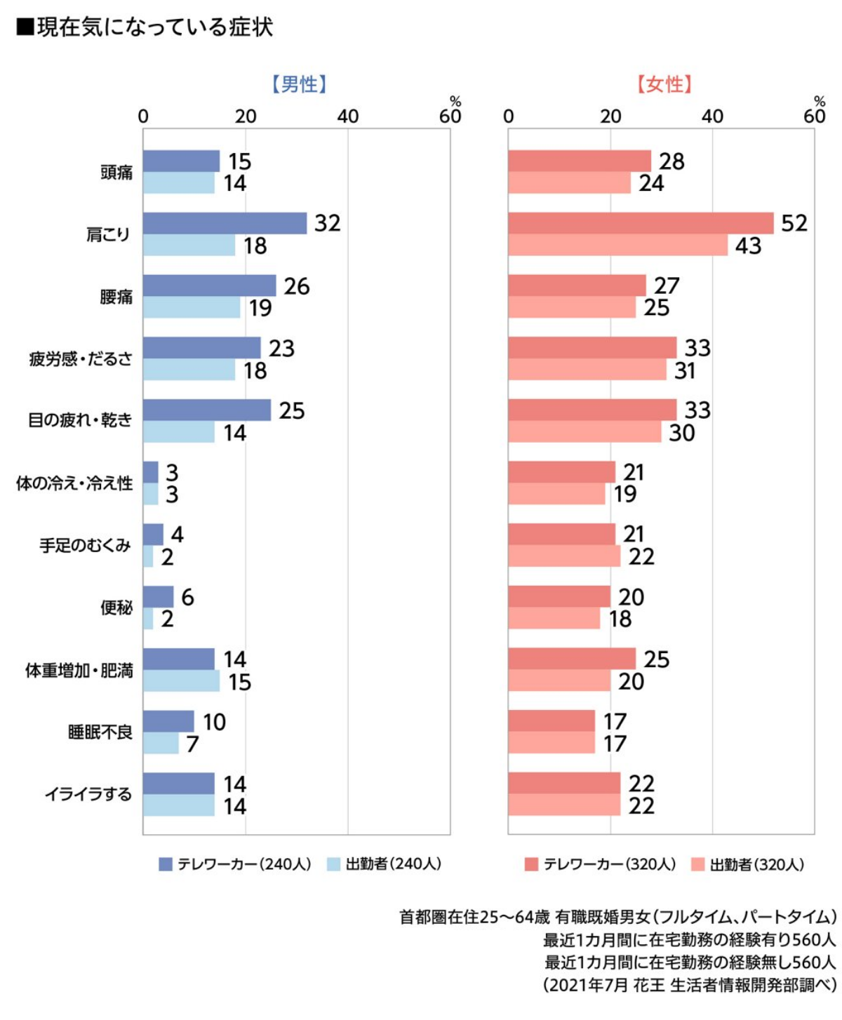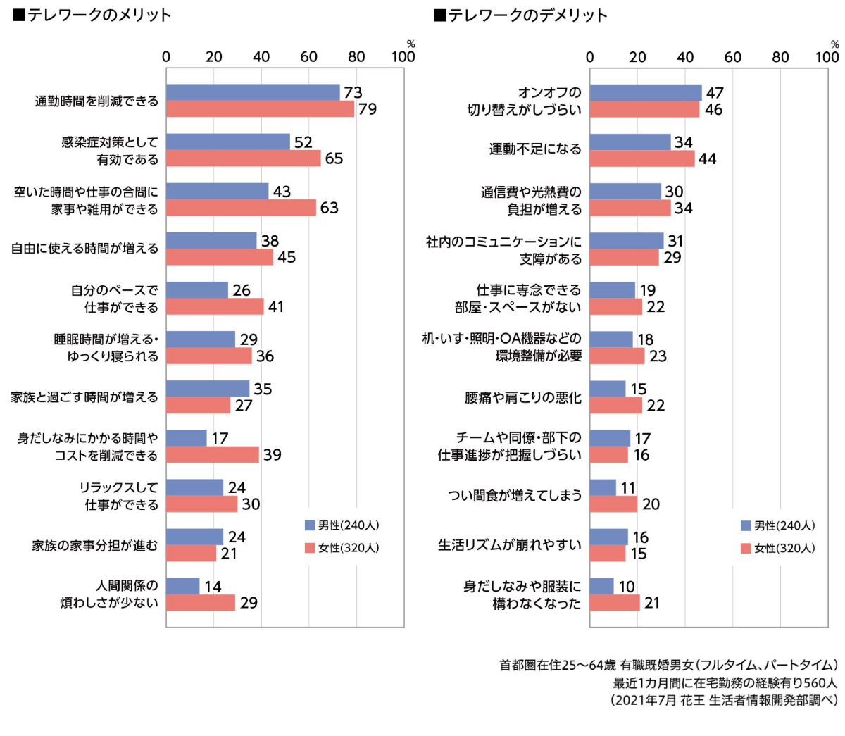 ◎2021年7月/インターネット調査/首都圏在住25~64歳既婚男女/在宅勤務者(最近1カ月間に在宅勤務の経験有り)、出勤者(最近1カ月間に在宅勤務の経験無し)男性各240人、女性各320人