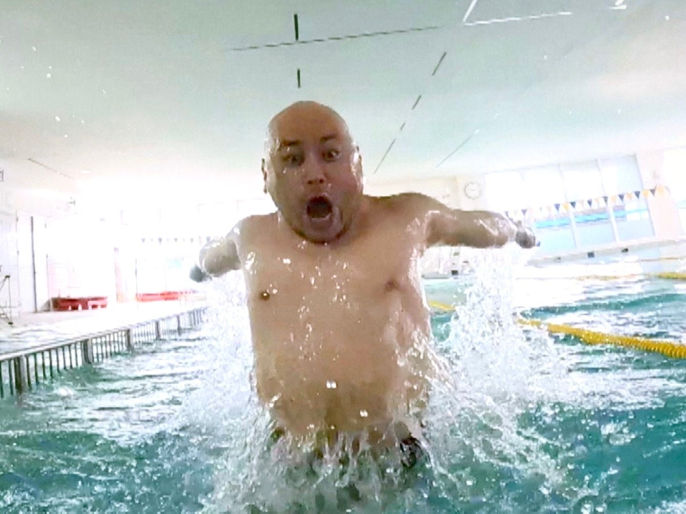 全力で泳ぐ瀧川アナのもとにザコシが飛び込んで乱入!