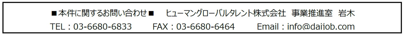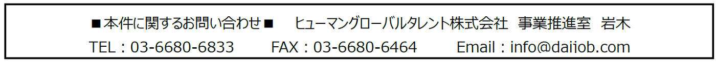 お問い合わせ:ヒューマングローバルタレント株式会社 info@daijob.com