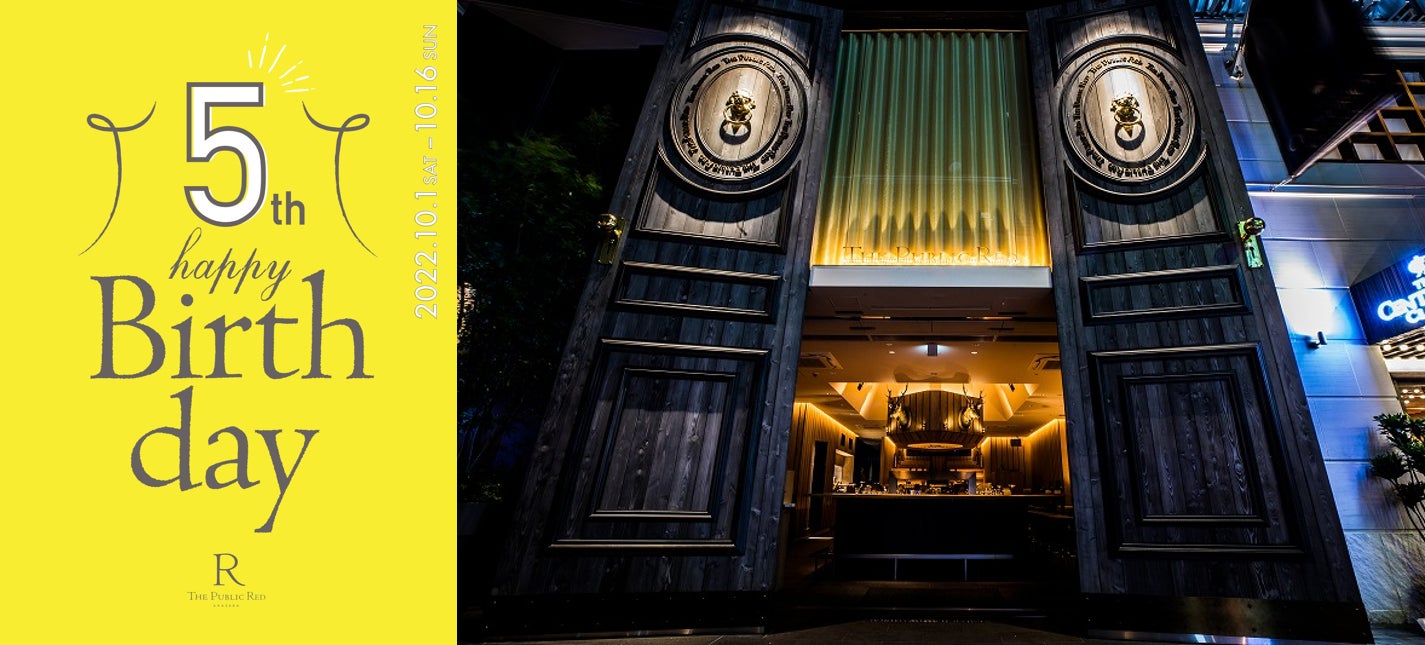 【ボトル50%OFFや終日ハッピーアワー実施】10/1(土)からガストロパブ『THE PUBLIC RED AKASAKA(ザ・パブリックレッド アカサカ)』で5周年記念キャンペーン開催!