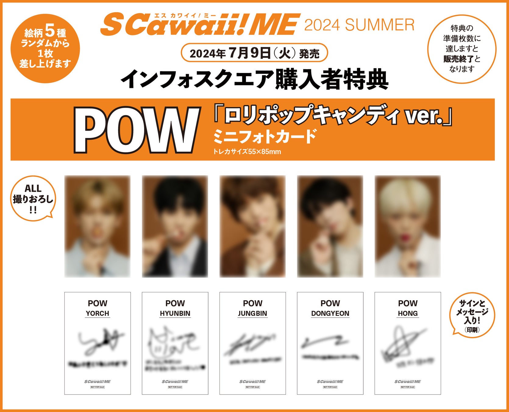 下記URLから『S Cawaii! ME 2024 SUMMER』をお求めいただくと、POWの皆さんがロリポップキャンディをくわえた可愛いミニフォトカードを5種からランダムで1枚差し上げます。