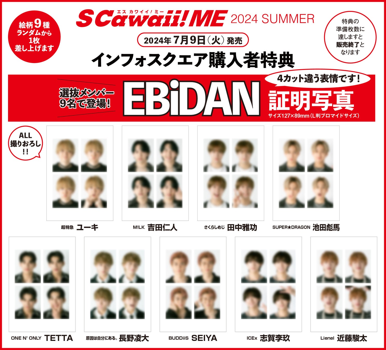 下記URLから『S Cawaii! ME 2024 SUMMER』をお求めいただくと、EBiDANの購入者特典「証明写真」を9種からランダムで1枚差し上げます。