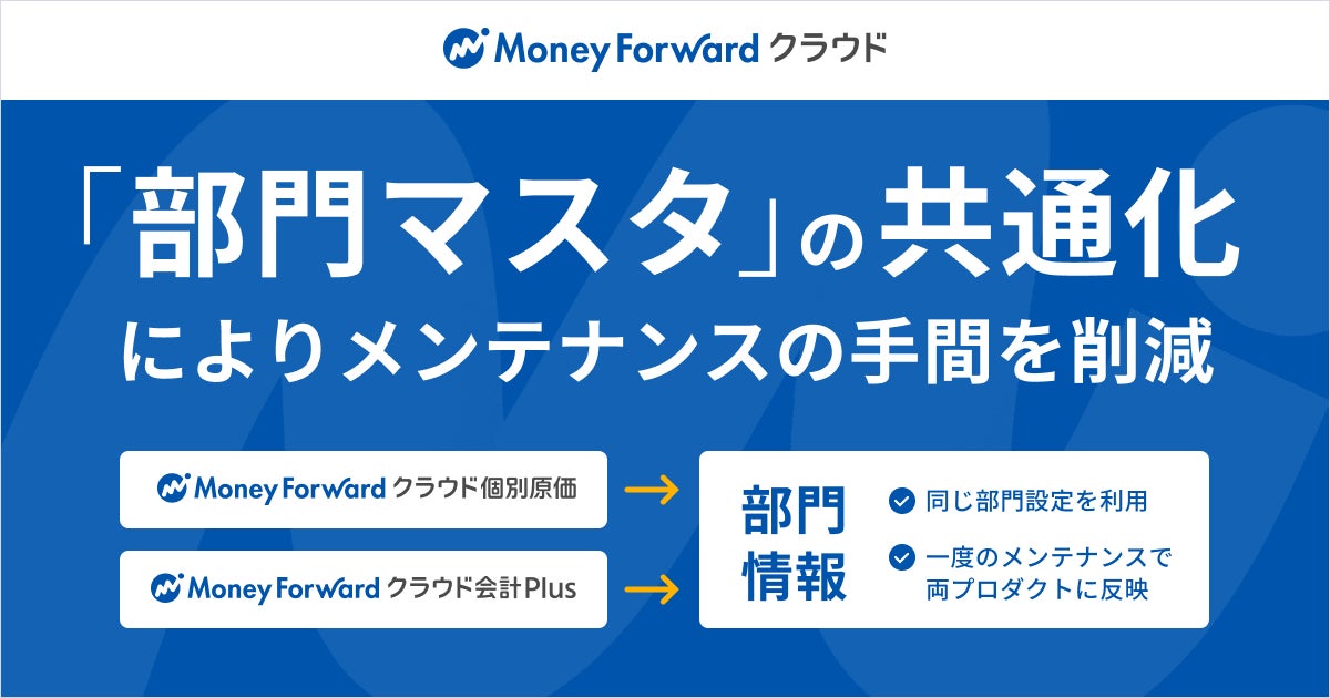 株式会社マネーフォワードは、中堅企業・上場企業向け会計ソフト『マネーフォワード クラウド会計Plus 』と、個別原価管理システム『マネーフォワード クラウド個別原価』の「部門マスタ」を共通化しました。