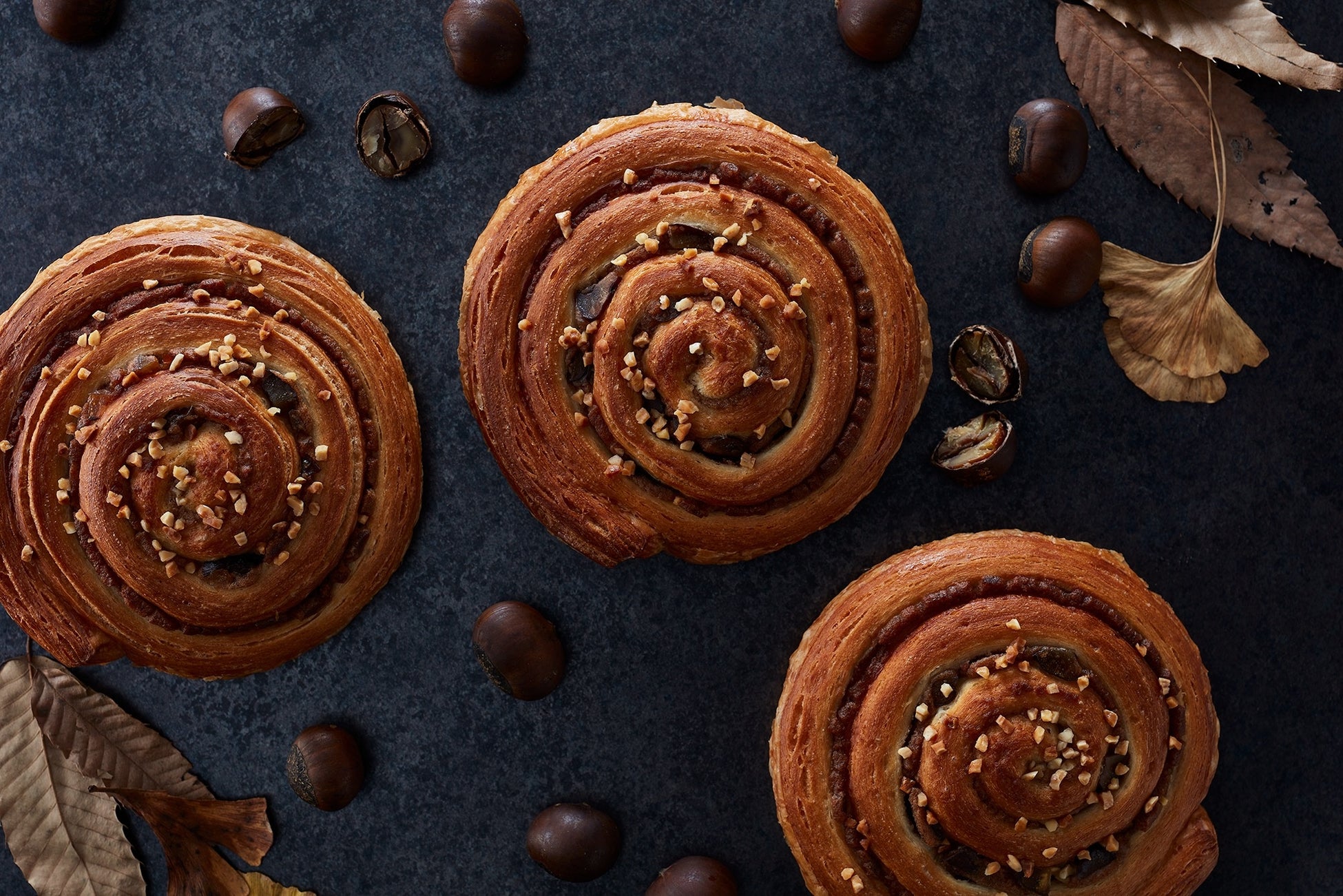 フランス産醗酵バターを使用した生地に、ほっくり優しい甘さのマロンを巻き込み焼き上げました。