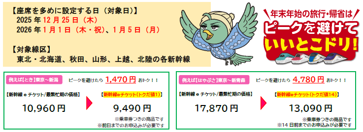対象日は料金がおトク&おトクな座席がトリやすいので、とってもおススメです。