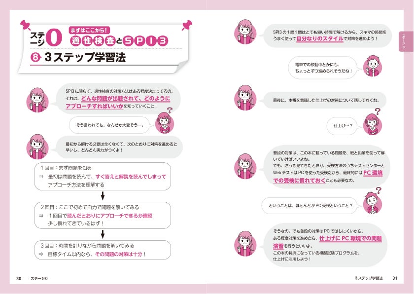 自己分析や面接対策に時間をかけたい就活生に向けて、本書では効率よく対策できる「3ステップ学習法」を採用しています。