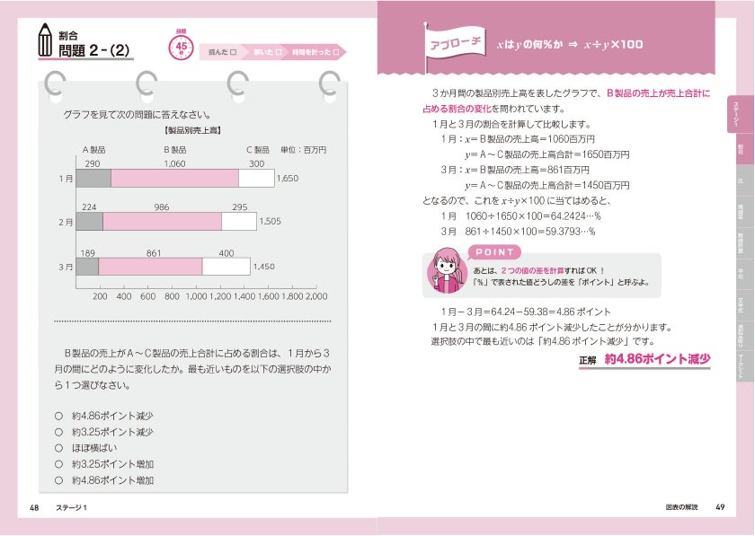 最新の試験制度・傾向の徹底分析から問題の優先度を見極め、SPI3は4つのステージに、玉手箱は3つのステージに分類しています。「とにかく時間がない!」「最速で仕上げたい!」という状況でも、最初のステージ1をマスターすれば最低限の合格水準に届くことができます。じっくり対策しすべてのステージをこなせば、余裕をもって、必要とされるボーダーラインを超える実力が身につきます。