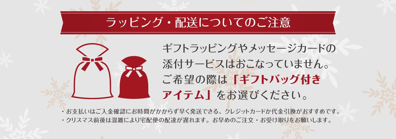 - クリスマスプレゼントに最適!ギフトバッグ付きアイテムも!!