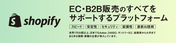 起業家から中堅中小企業、大手企業まで、あらゆる規模・業種の事業に対応するShopifyは、世界175カ国以上で利用されるECプラットフォームです。スピード、信頼性、セキュリティを重視し、最新のAI技術を駆使。味の素、アンカージャパン、WEGOなど、多くのブランドが利用しています。