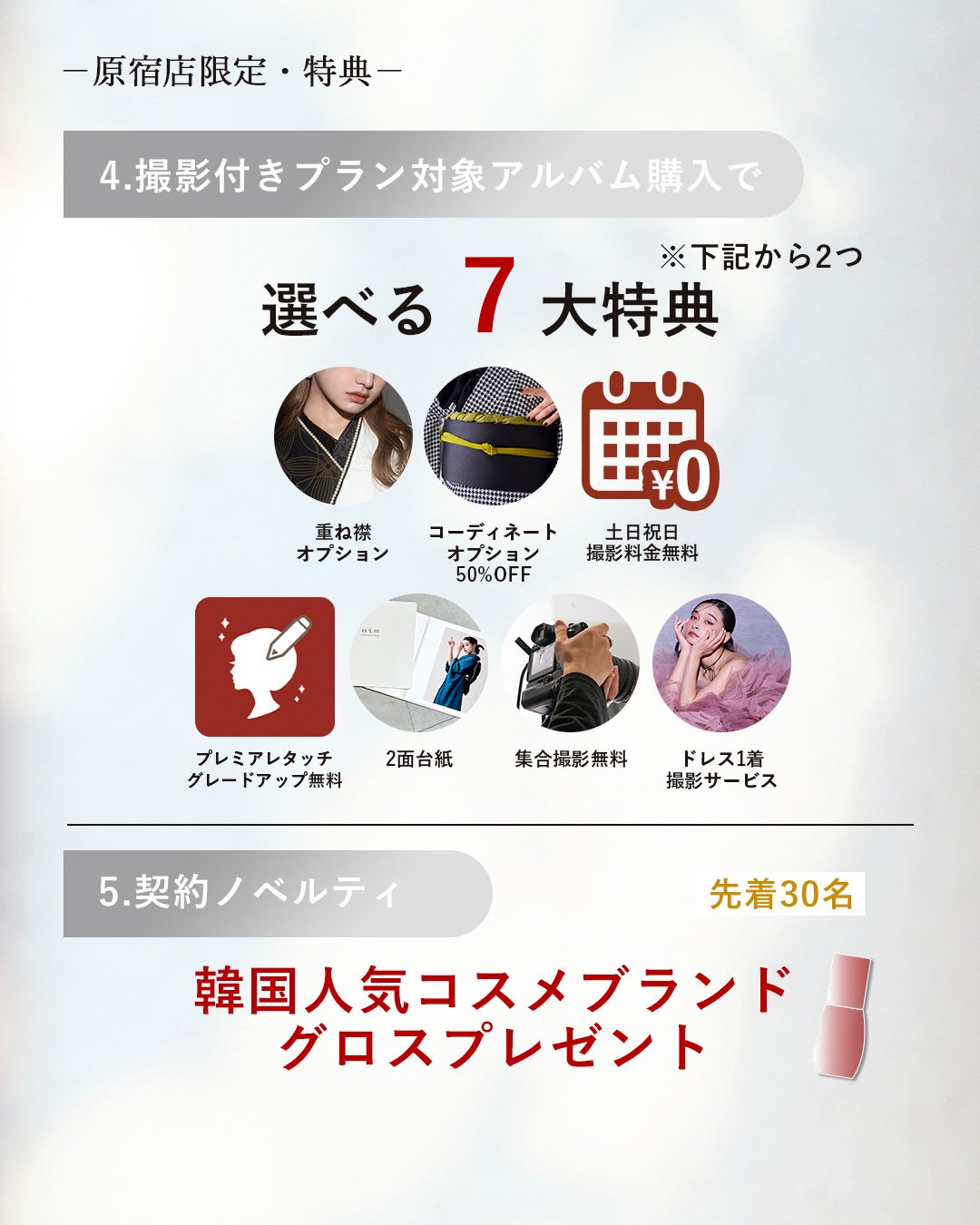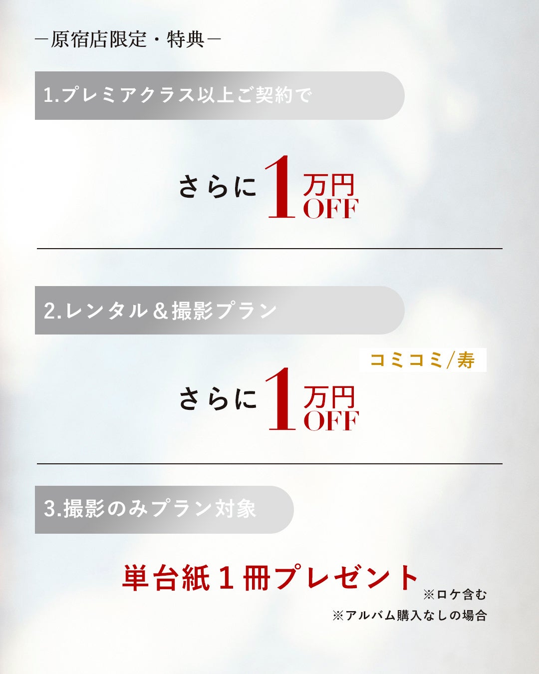 原宿店では共通特典に合わせてさらにお得な割引特典をご用意!