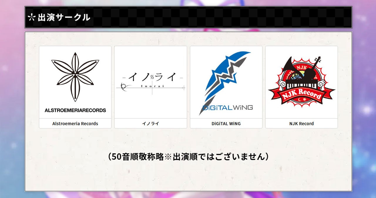 【出演】 Alstroemeria Records / イノライ / DiGiTAL WiNG / NJK Record