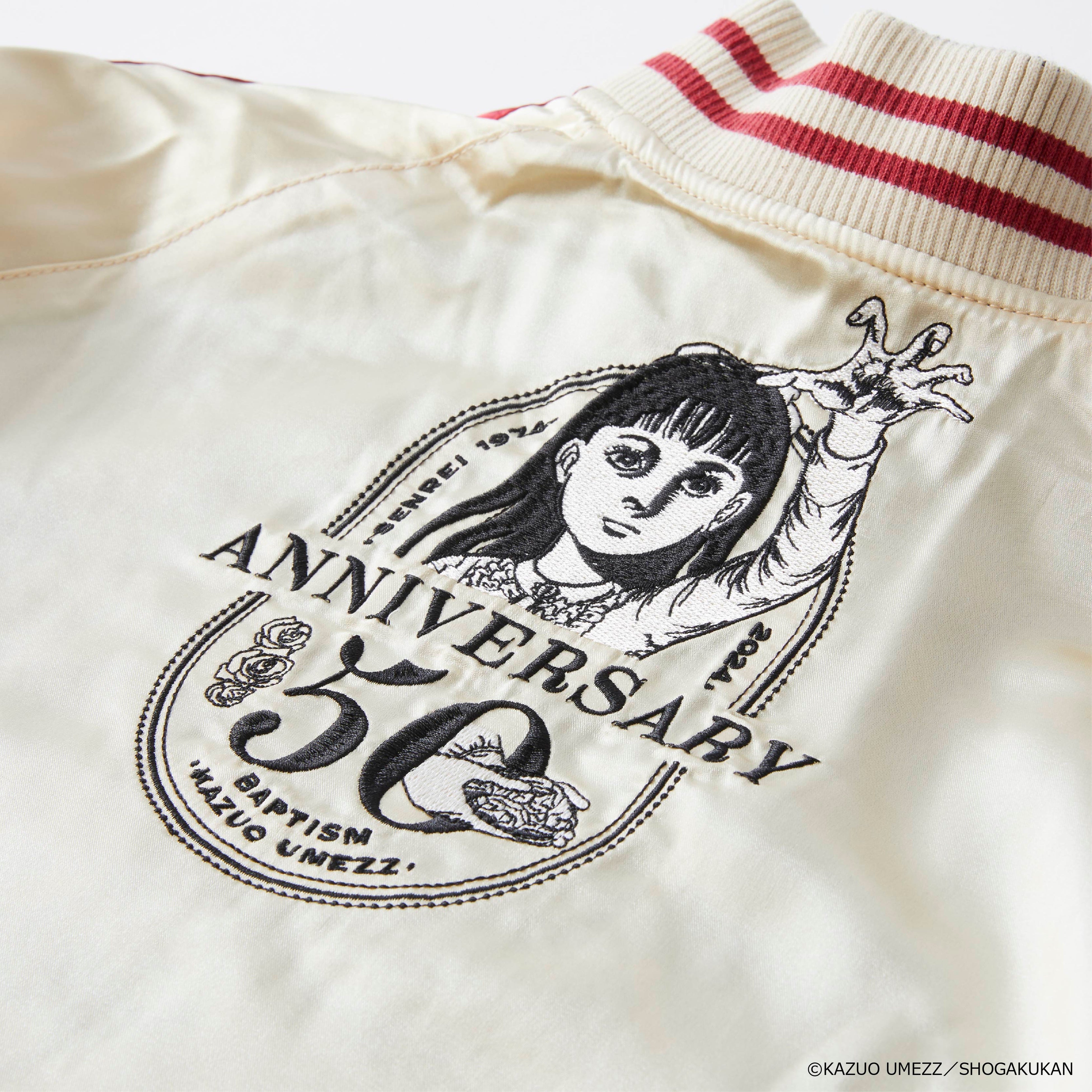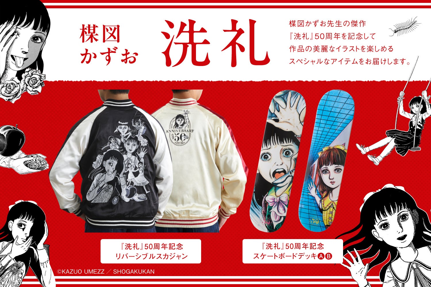楳図かずお『洗礼』50周年記念! 豪華刺繍のリバーシブルスカジャンと美麗なイラストのスケートボードデッキが登場!