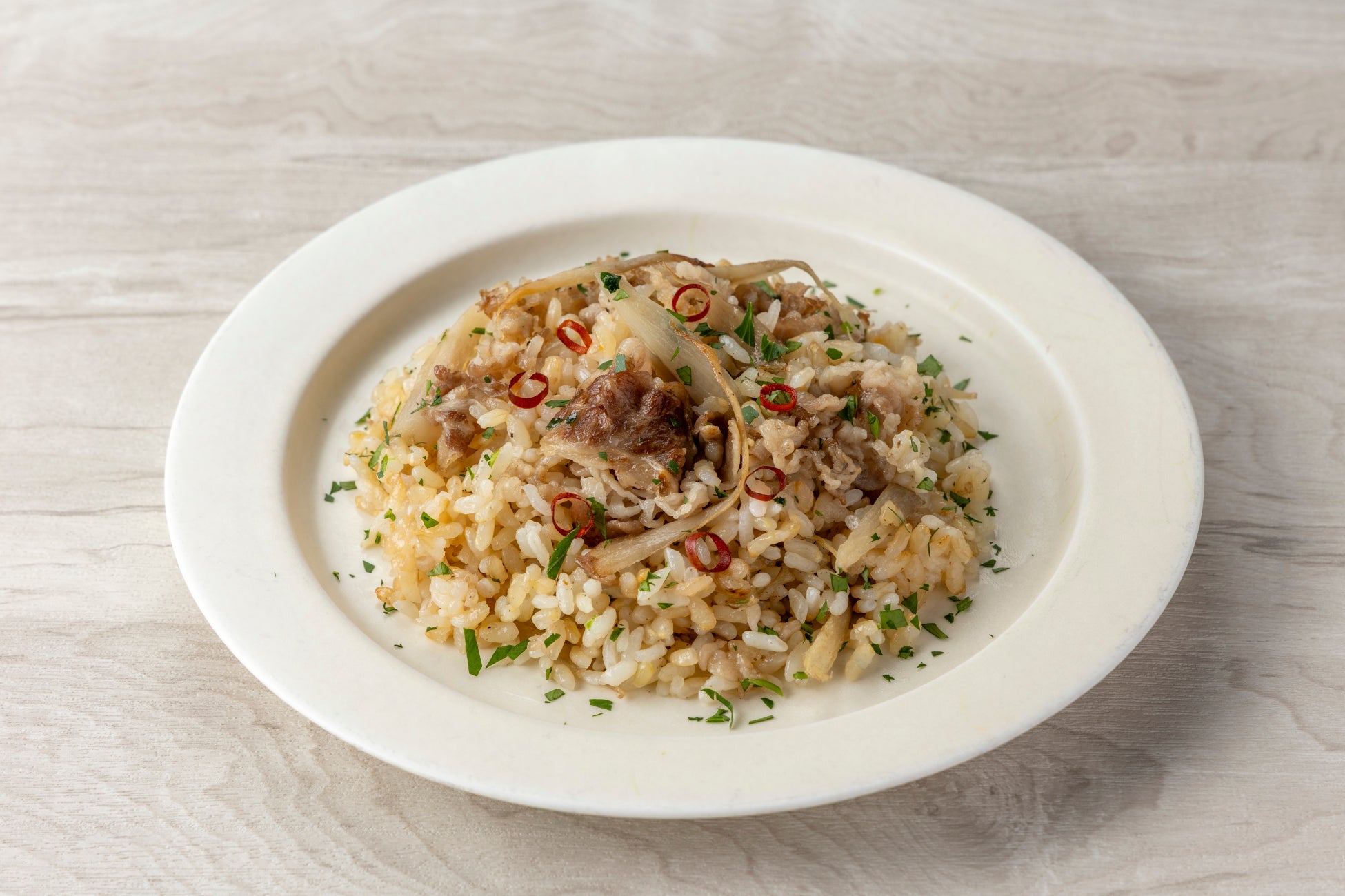 メニュー名:牛バラ肉とごぼうのペペロンチーノご飯