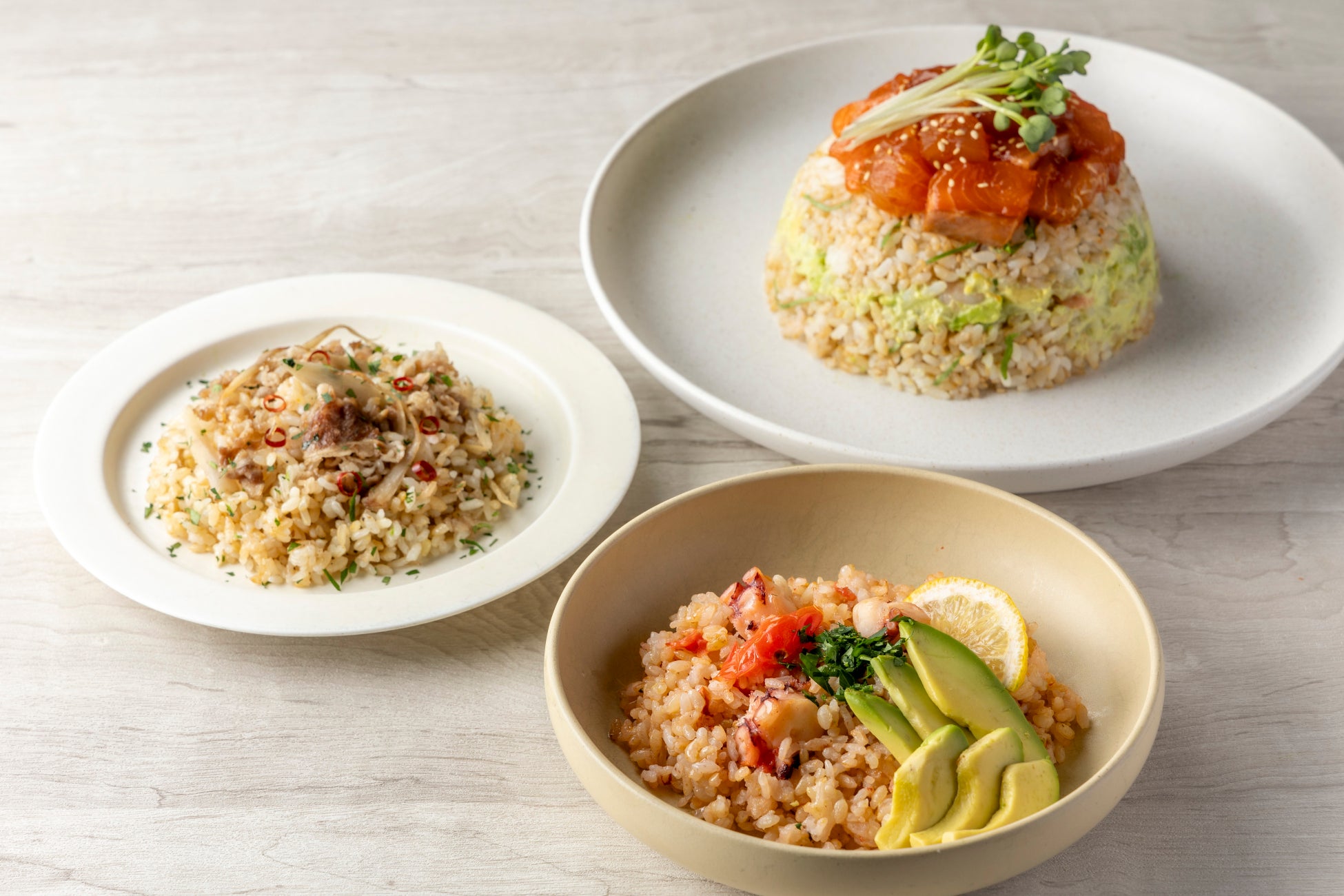 特長:炊飯器に材料を入れて、スイッチを押すだけの簡単ステップで、バランス良く栄養を摂ることができる一品が完成します。にんにくの香りが食欲をそそり、アボカドの甘味と、レモンやトマトの酸味の相性も抜群で、非常に満足感を感じるメニューです。海産物の生臭さが発芽米のぬかにより気になりません。