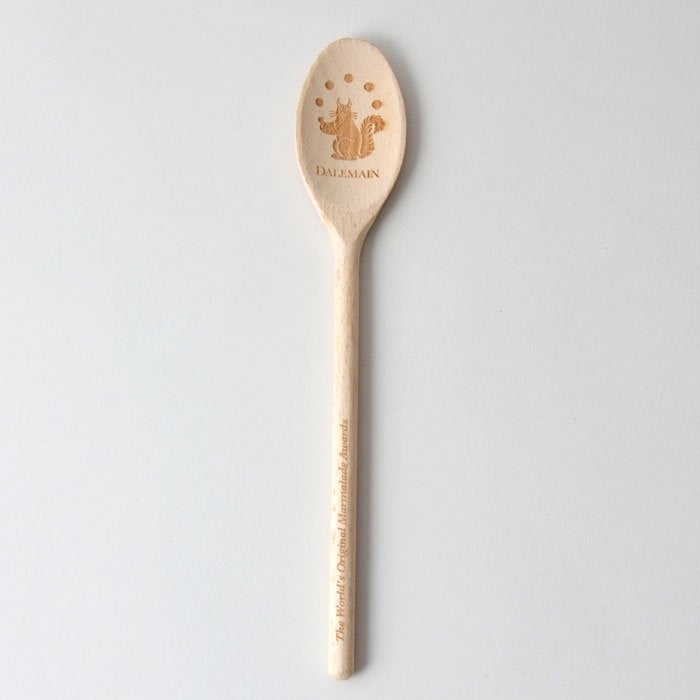 ダルメインのリスがかわいらしい大きな木製スプーン。取手にはアワードの刻印入り。