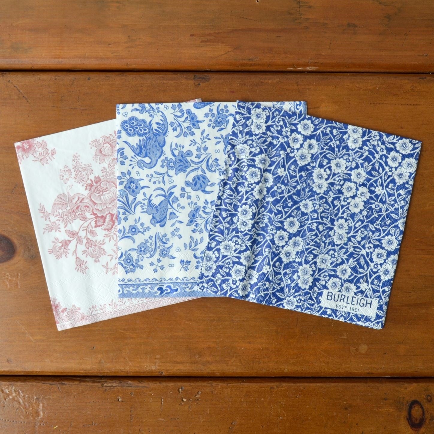 バーレイ人気柄のペーパーナプキンはテーブルコーディネートを華やかに演出します。デコパージュなどにもお使い頂けます。