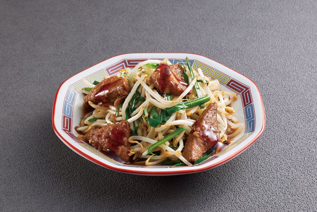 厚切りで食べ応えのあるレバーを、肉に合うこだわりのタレでサッと炒めました。醤油と甘味と旨味が凝縮した一品です。