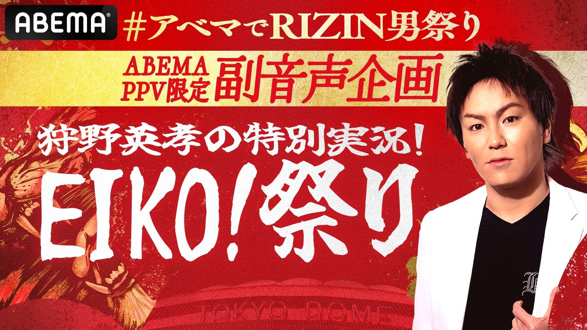 ABEMA限定の副音声チャンネルで『RIZIN男祭り』を楽しみつくそう!狩野英孝がユーモアあふれる独自目線で実況解説「EIKO!祭り」 狩野英孝「一緒に格闘技の魅力を知っていきましょう!」