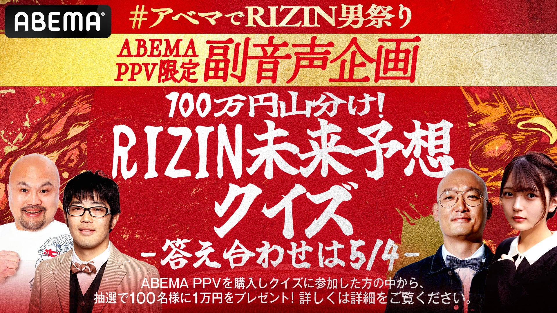 “RIZINあるあるクイズ”に答えて賞金をゲット!「100万円山分け!RIZIN未来予想クイズ」~「ABEMA PPV」にて全試合生中継5月4日(日)開催『RIZIN男祭り』~